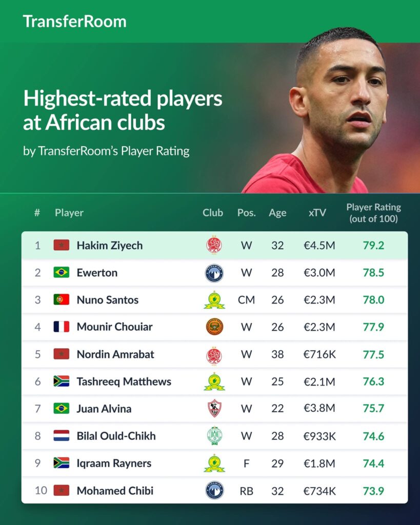 ويعتمد “TransferRoom” في تصنيف لاعبيه على معايير دقيقة، من أبرزها جودة الفريق الذي يمثله اللاعب، ومستوى المنافسة، إضافة إلى الإحصائيات الفردية ومدى تأثيره داخل الملعب، وهي نقاط منحت زياش تفوقا واضحا على منافسيه في إفريقيا.
