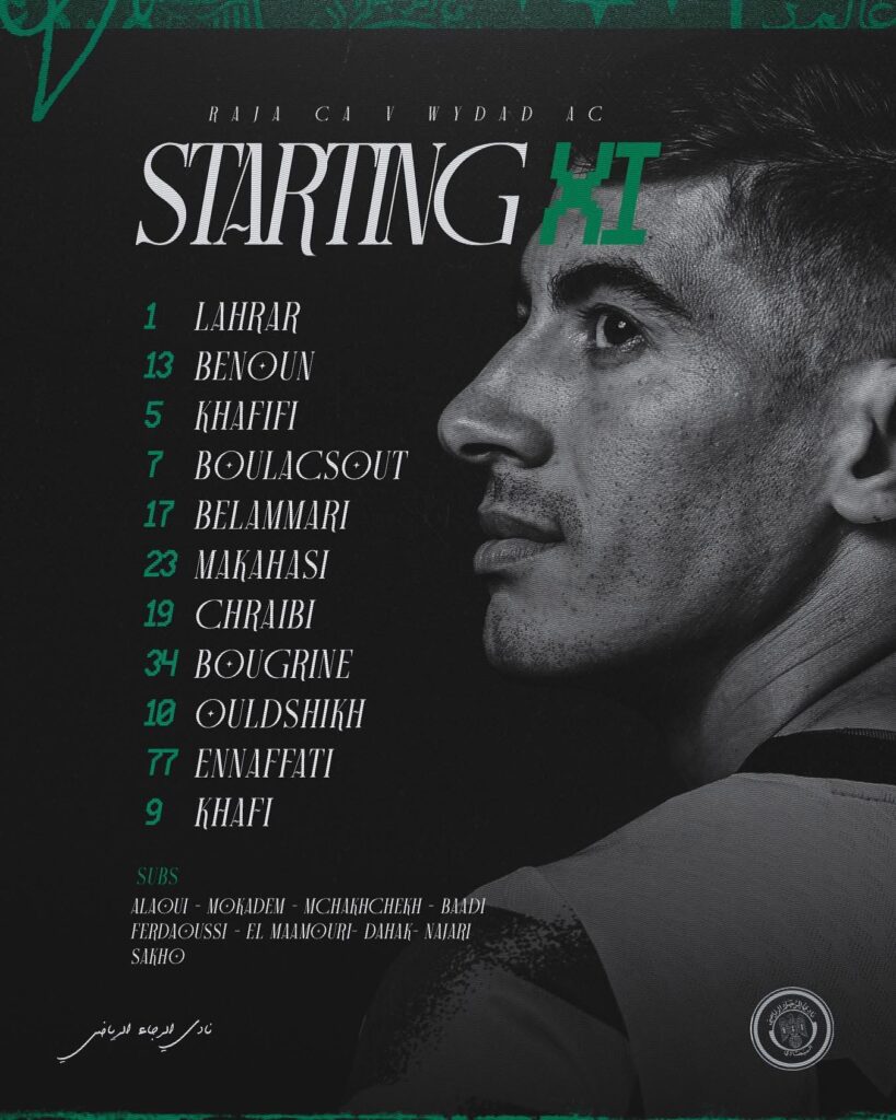 وجاءت تشكيلة الرجاء على الشكل التالي: