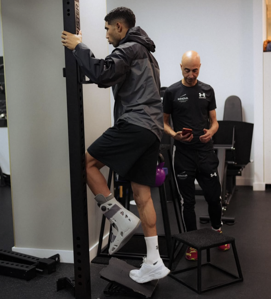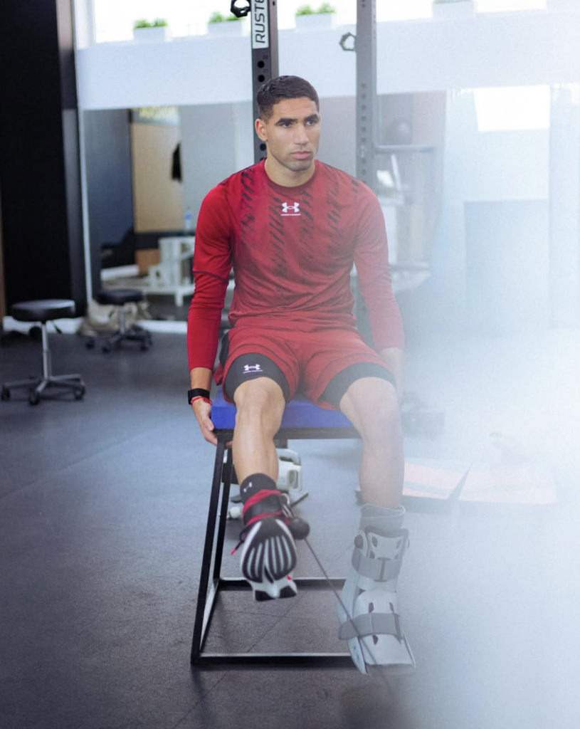ونشر حكيمي، مساء أمس، صورا عبر حسابه الرسمي على موقع إنستغرام، ظهر فيها وهو يقوم بتمارين بدنية تحت إشراف مدرب خاص، واضعا حذاء واقيا على قدمه اليسرى التي تعرضت للإصابة.