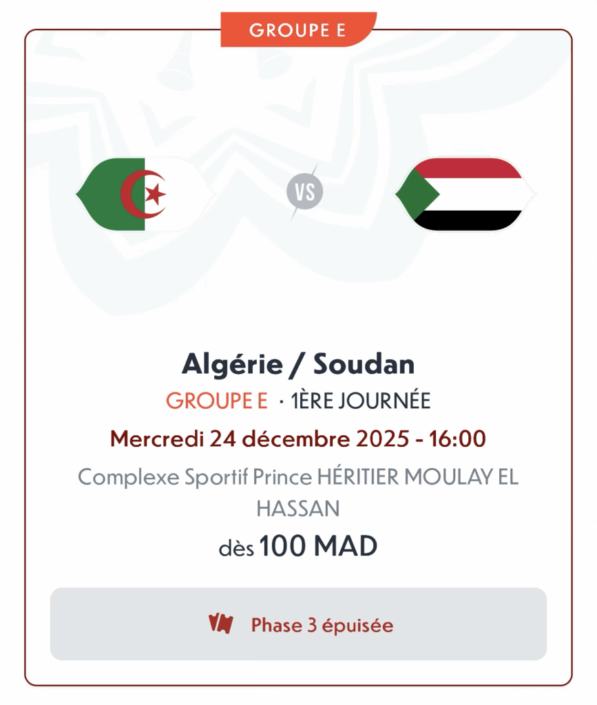 مع اقتراب انطلاق نهائيات كأس الأمم الأفريقية، التي تحتضنها المملكة المغربية ما بين 21 دجنبر 2025 و18 يناير 2026، شهدت عملية اقتناء تذاكر مباريات المنتخب الجزائري إقبالا كبيرا، في مشهد يعكس الحماس الجماهيري الكبير لثعالب الصحراء قبل انطلاق العرس القاري.