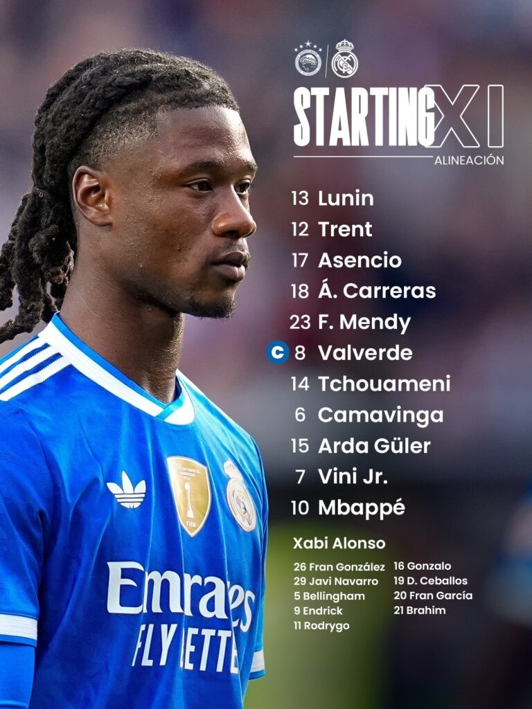 خط الوسط: فالفيردي، أردا غولر، تشواميني، كامافينكا.